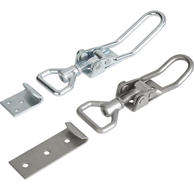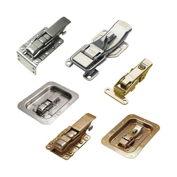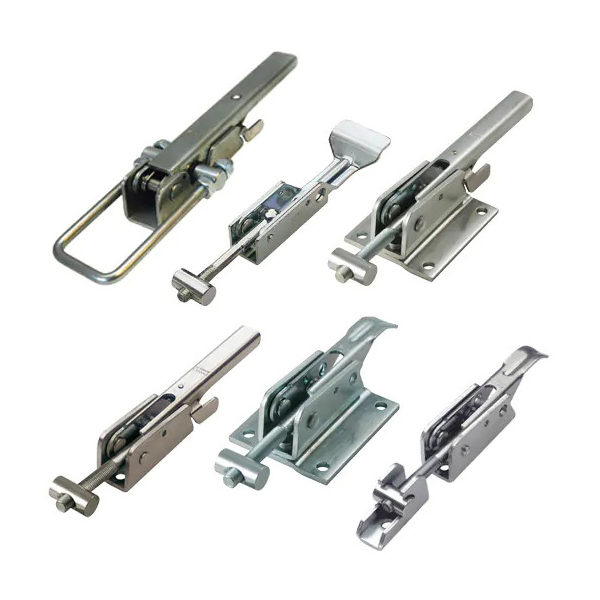 Truck and trailer latches are hardware systems for securing doors, gates, and connections, ranging from heavy-duty over-center clamps for cargo bodies to coupler locks for trailer hitches, ensuring safety and preventing theft through robust metal fasteners like toggle latches, hasps, and specialized locking rings for transport. They're vital for keeping doors shut and trailers attached, with types including simple levers, twist locks for containers, and coupler locks that secure the hitch ball.