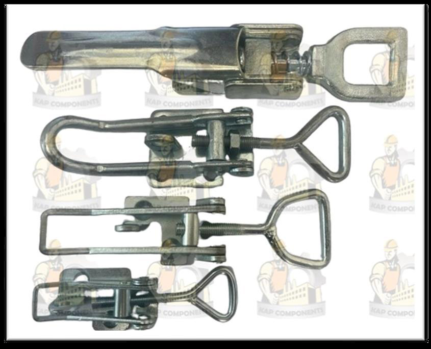 Truck and trailer latches are hardware systems for securing doors, gates, and connections, ranging from heavy-duty over-center clamps for cargo bodies to coupler locks for trailer hitches, ensuring safety and preventing theft through robust metal fasteners like toggle latches, hasps, and specialized locking rings for transport. They're vital for keeping doors shut and trailers attached, with types including simple levers, twist locks for containers, and coupler locks that secure the hitch ball.